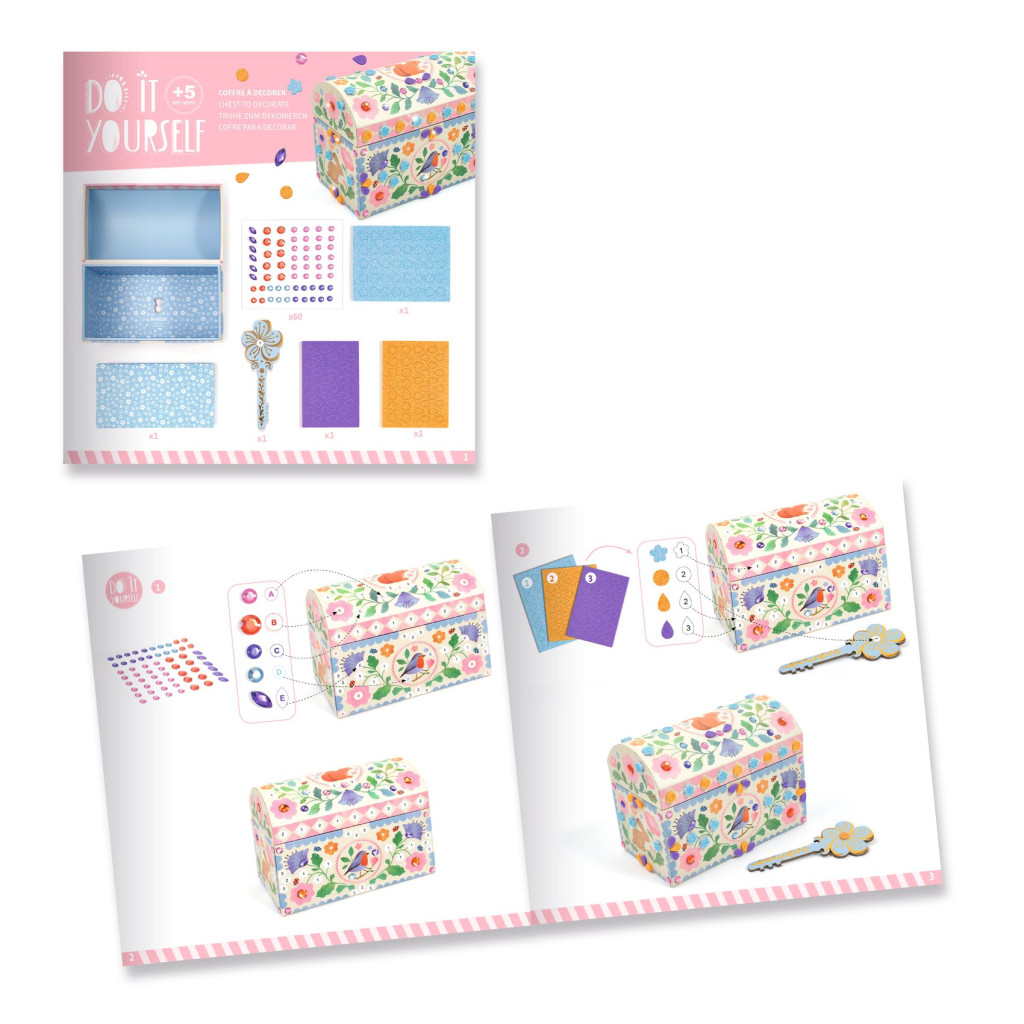 A csillogó mozaikoknak és strasszoknak köszönhetően a kis ládika pont úgy néz majd ki, mintha igazi lenne. A készletben található kis füzet lépésről lépésre vezet az összeállításban.