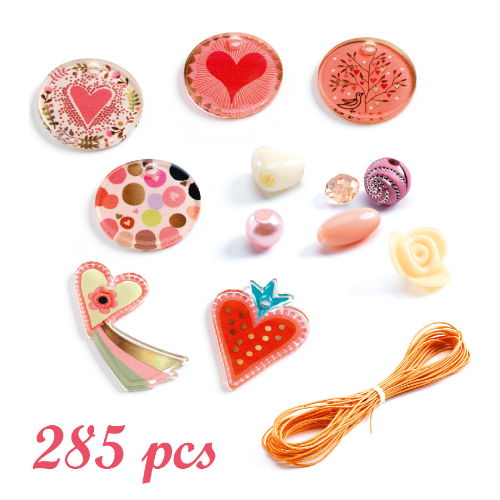 Ebben a készletben 285 akrilgyöngy és 6 "szív" medál van a gyönyörű ékszerek készítéséhez. A színek és formák jól átgondoltak, kedvesen tervezettek, egyszerű a gyöngyök összeválogatása egy csodásan harmonikus eredmény érdekében. A gyermek a fűzőszálra felfűzi a gyöngyöket, a szívformákat a saját kedve, ízlése szerint. A készletben található hozzávalókból szép nyakláncokat vagy karkötőket készíthet. A gyermek fűzhet, alkothat egyedül, de a családban közös tevékenységnek is nagyszerű.