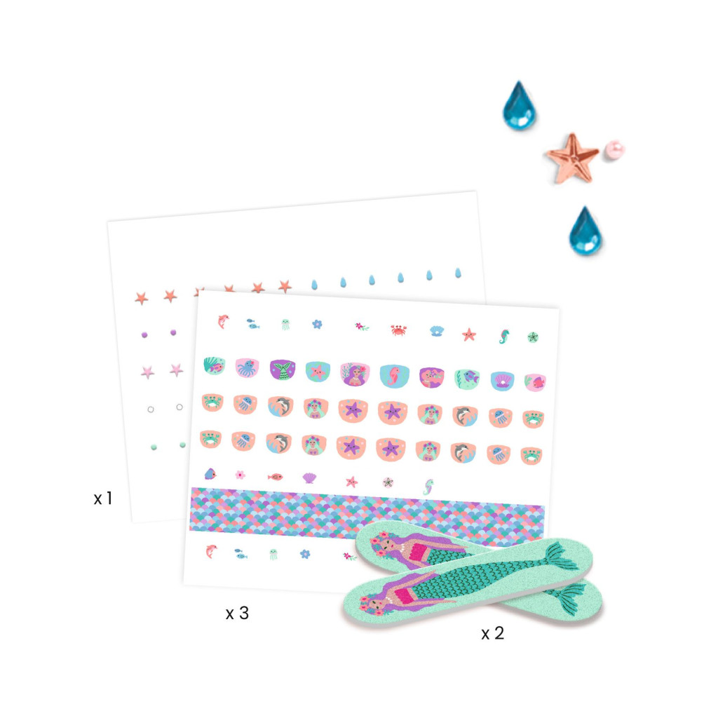 A kicsik nagy örömére íme egy villámgyors "manikürkészlet", melynek egyszerű és gyors a felhelyezése, leszedése. A több mint 240 körömmatricából bőven jut mindenhova: a kisujjtól a hüvelykujjig többféle matricából lehet választani vagy akár a színes matricacsíkokból is lehet alkotni. A matricák vízállóak, tartósságuk körülbelül 1 hét. Eltávolításukhoz nincs szükség körömlakklemosóra.