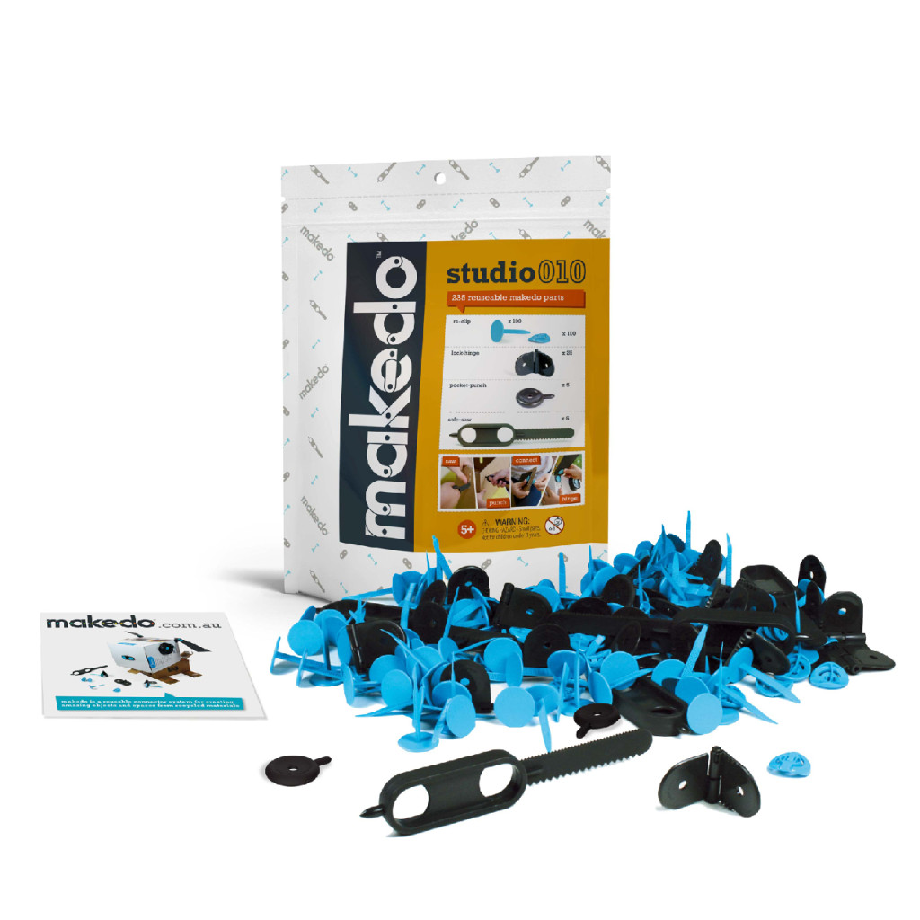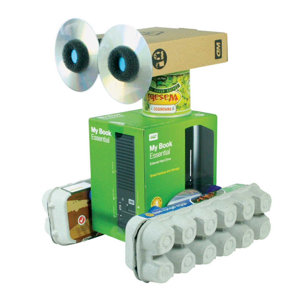 Ezzel a készlettel és a háztartásban található csomagolóanyagokból, dobozokból, papírpoharakból, műanyag flakonokból és kupakokból most 10 gyermek készíthet egyedi játékot magának.