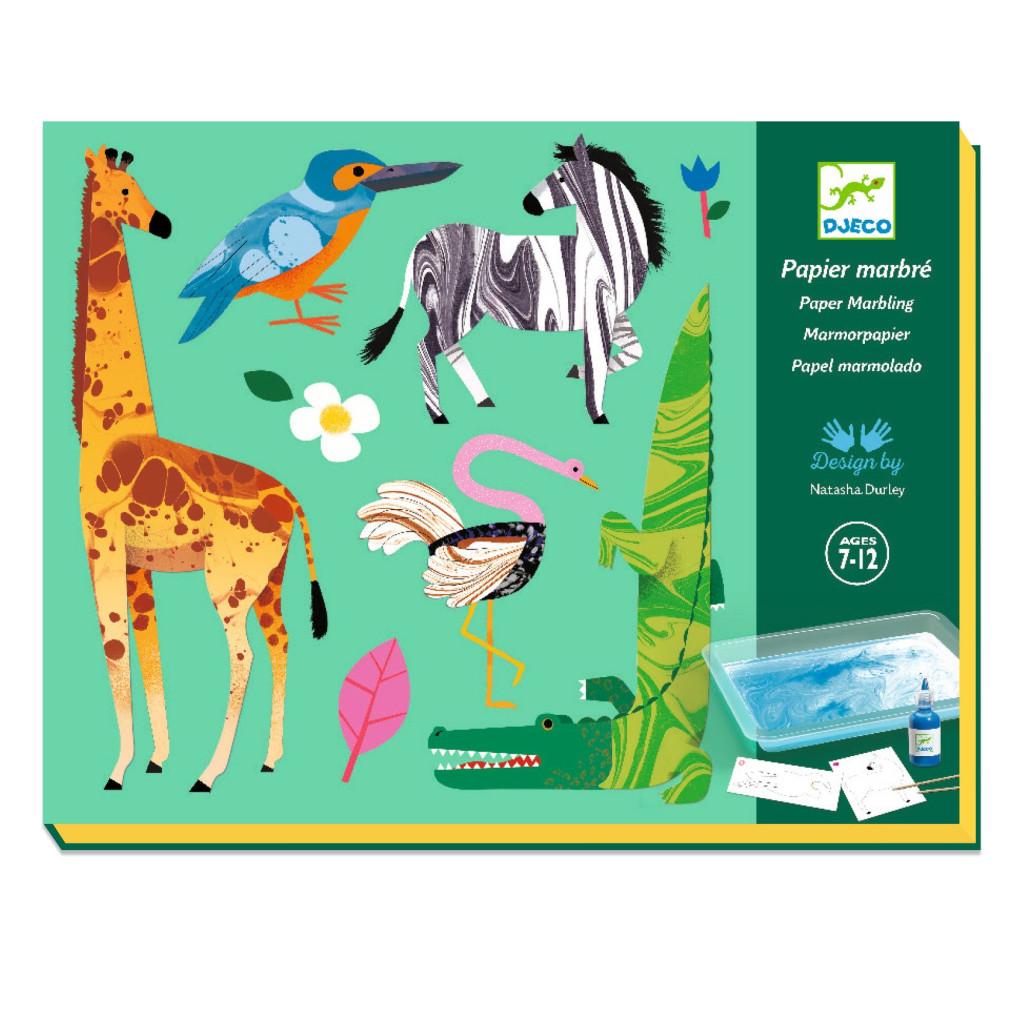 A gyermek a 4 festmény állatait egészíti ki "matricákkal", amelyeket saját maga "nyomtatott". Cseppenként kiönti a tintákat, majd összekeveri: a színek elmosódás nélkül fonódnak össze. Ezután a "matricákat" a műrványozott vízfürdő felületére helyezi, hogy a festékmintákat átvegye a papír. A létrehozott minták varázsütésre kerülnek át az előre illusztrált képre!