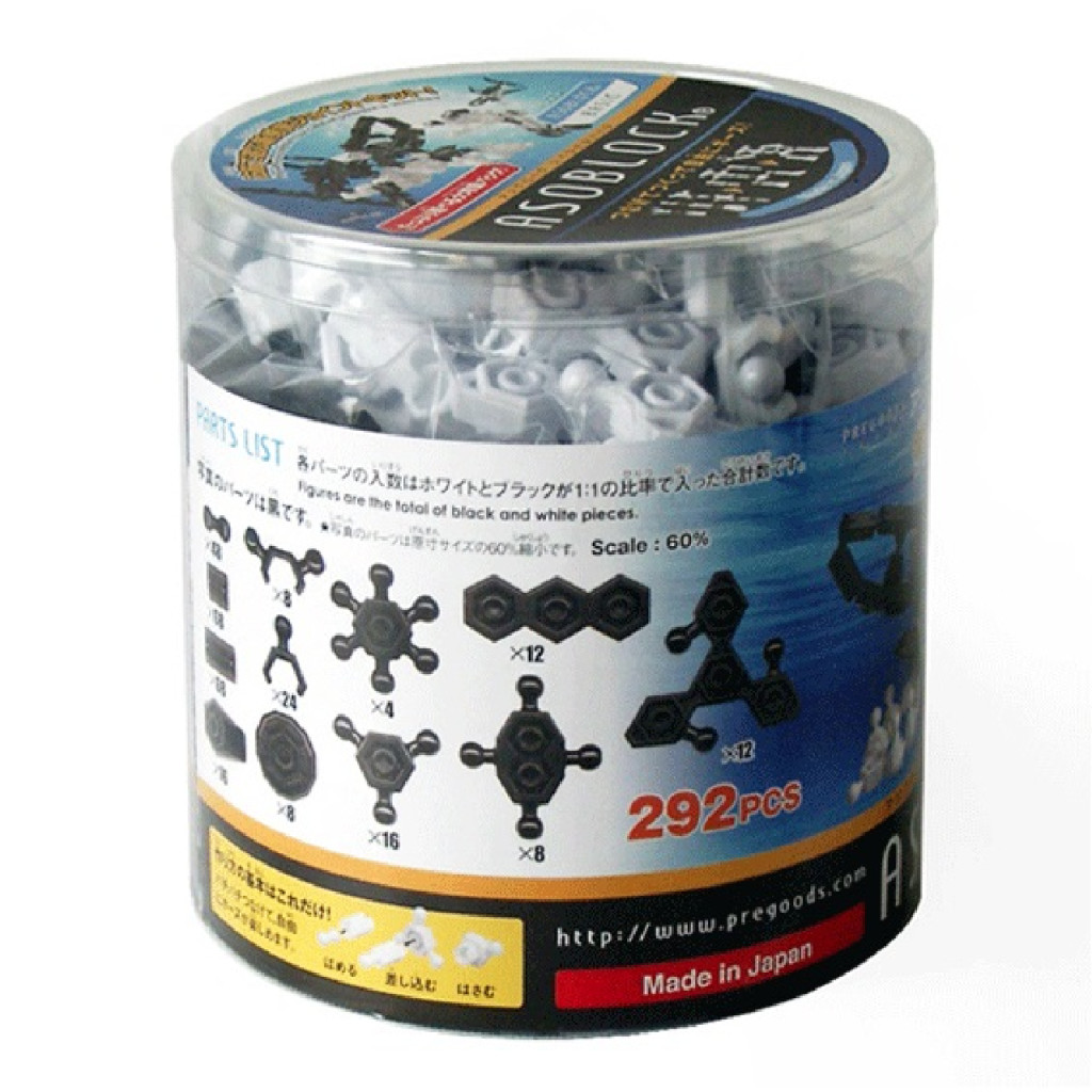 Az ASOBLOCK alapkészlet 402S készletben 292 darab fekete és fehér színű elem található.