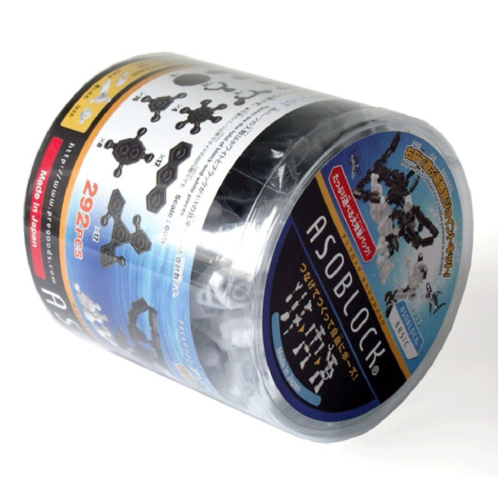 Kombinálható a többi alapcsomaggal, és az egyéb Asoblock készletekkel. Ösztönzi a képzelőerőt, a logikus gondolkodást és a kreativitást. A kis építőelemek formai kialakítása lehetővé teszi a többféle összeépítést. Az elemek gömbfejből és gömbfejtartó részekből gömbcsuklós szerkezet felépítését teszik lehetővé, így a csatolt építőelemek gyakorlatilag minden irányban elforgathatóak.