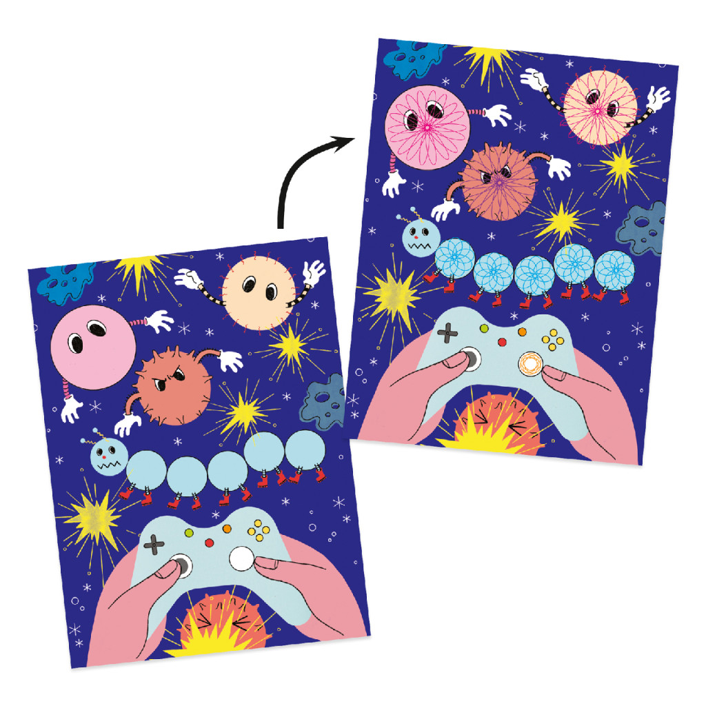 Ez egy régi elven működő új rajzkészlet gyönyörű színes spirálok készítéséhez, hogy a rozettákkal kiegészítse a gyermek a 30 oldalas képtárban javasolt képeket, amelyek illusztrációi 10 különböző témát ölelnek fel. A részben színes, előrajzolt képeket fogaskerekekkel rajzolt szimmetrikus körformákkal kell kiegészíteni, majd kiszínezni. A mágneses eszközöket könnyű kezelni, nem csúszkálnak el, így igazán szépen lehet dolgozni. Az eszközöket saját ötletek megvalósítására is kiválóan lehet használni.