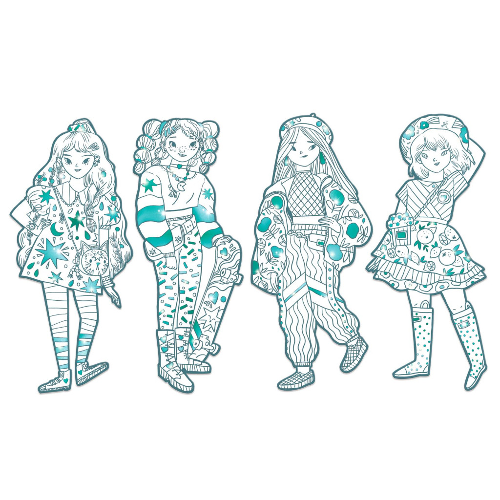 A Djeco a sziluett alakú puzzlek után megtervezte a sziluett formájú divatmodell színező sorozatot is. A Les Demoiselles (Kisasszonyok, hölgyek) sorozatában kilenc különböző illusztrátor kilenc különféle divatmodell ruháit tervezete meg: mindenki azonos alapból kiindulva és mégis mindenki más-más megjelenésű, karakterű modelleket és öltözéket alkotott. A divatbabák különleges mintázatú ruháit a kreatív színező teszi teljesen egyedülállóan egyedivé. Minden dobozban négy nagy, 32 cm magas sziluett formájú divatmodell figura van, mind mintázatokban gazdag és fényes metál részekkel, szegélyekkel díszített ruhákat jelenít meg, hogy még vonzóbbá tegyék a figurák kiszínezését és végül a divatmodellek megjelenését.
